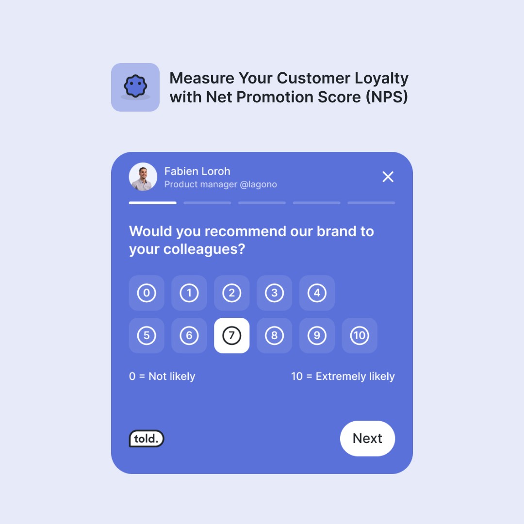 Net Promoter Score is a golden gem for measuring customer loyalty. By asking one simple question – "How likely are you to recommend our product/service to a friend?" – you can measure your customers' loyalty on a scale from -100 to 100.