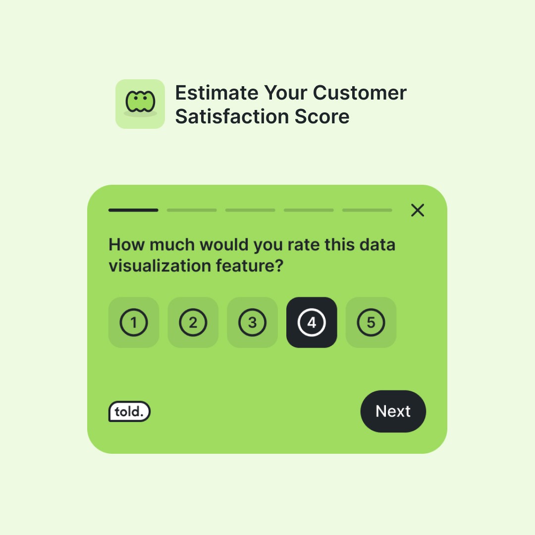 Customer Satisfaction Score measures short-term happiness with a product, service, or a specific interaction. It’s usually obtained by asking, "How satisfied were you with [specific aspect]?" Responses are measured on a scale, often from 1 (very unsatisfied) to 5 (very satisfied).