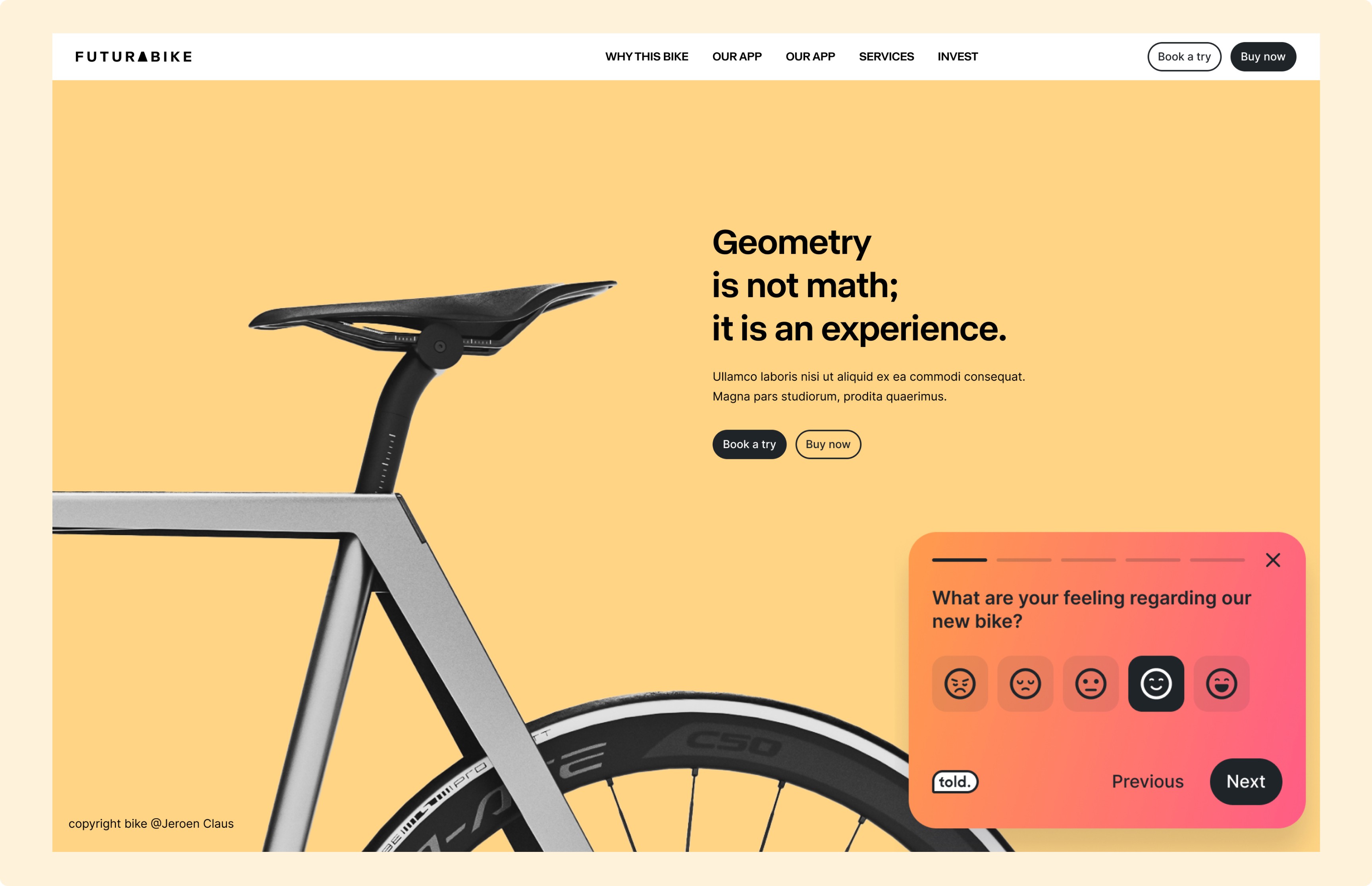 The design of your survey also affects the response rate. It is thanks to small features that put together the experience is pleasant and we want to respond. For example, at Told, we worked on micro interactions, such as moving emojis or animated background.